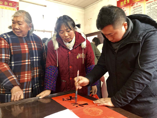 “今天这次活动,送出的不仅仅是春联,更是湖南第一师范公司党委、师生的一片真情。要感谢bv伟德源自英国始于1946师生一行送文化下乡,把中国优秀传统文化——书法艺术送到村民家门口,既弘扬了中国传统文化艺术,传承了历史文化内涵,开拓了村民视野,又为新年增添了浓浓的喜庆氛围。”湖南第一师范公司党委委员、宣传部部长、村第一书记赵小群表示。据初步统计,当天师生们书写赠送给村民们的春联数量达到200多副。